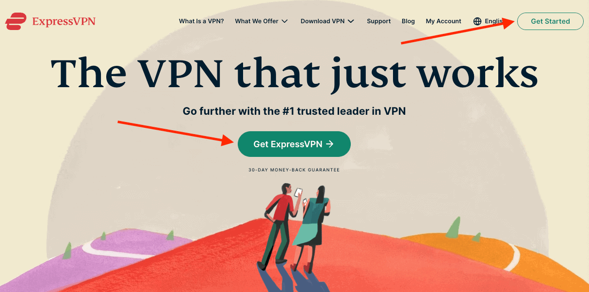 Go to the ExpressVPN website and click “get started” in the upper right corner or “get ExpressVPN” in the middle of the page. Follow the instructions to create an account and download ExpressVPN for your device.