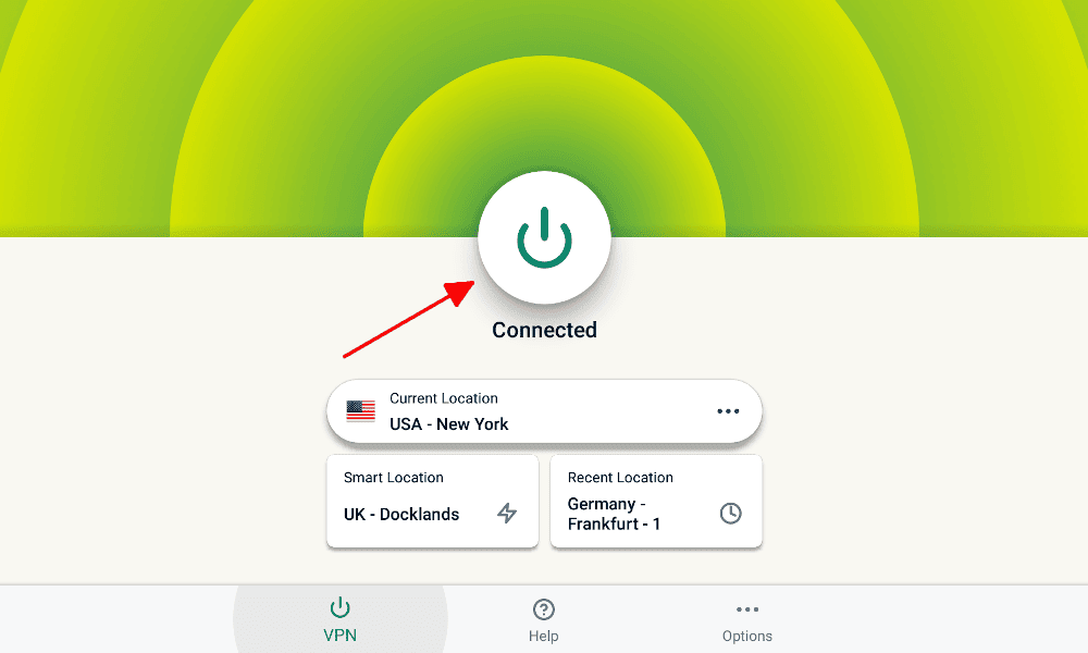 For most VPN providers, connecting is as simple as clicking the big “on” button. You can also select a location from the dropdown menu.