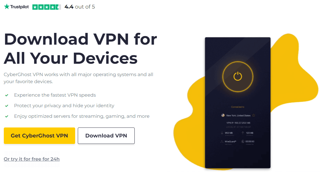 Sign up for CyberGhost on its official website. Download the CyberGhost app after you’ve signed up and install it on your device.