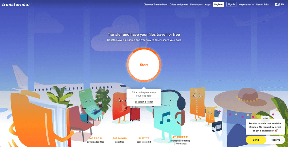 TransferNow is a full-feature file transfer service that is free to use without an account. You can upload files from the web interface or download the app for Mac, Windows, Linux, iOS or Android. Using the free service, you can transfer up to 5GB of data and add a password for extra protection.