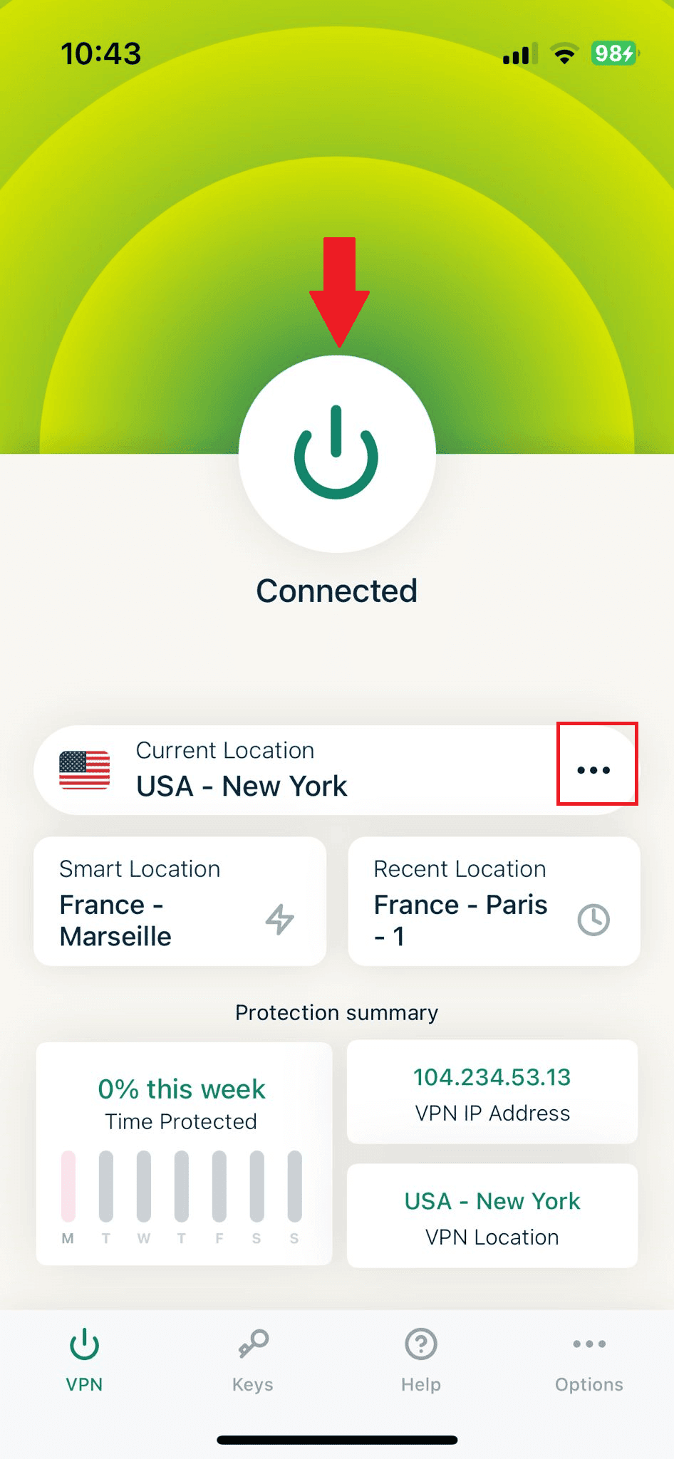 Open the VPN app on your device and select a U.S. server from the list. Click the “connect” button.