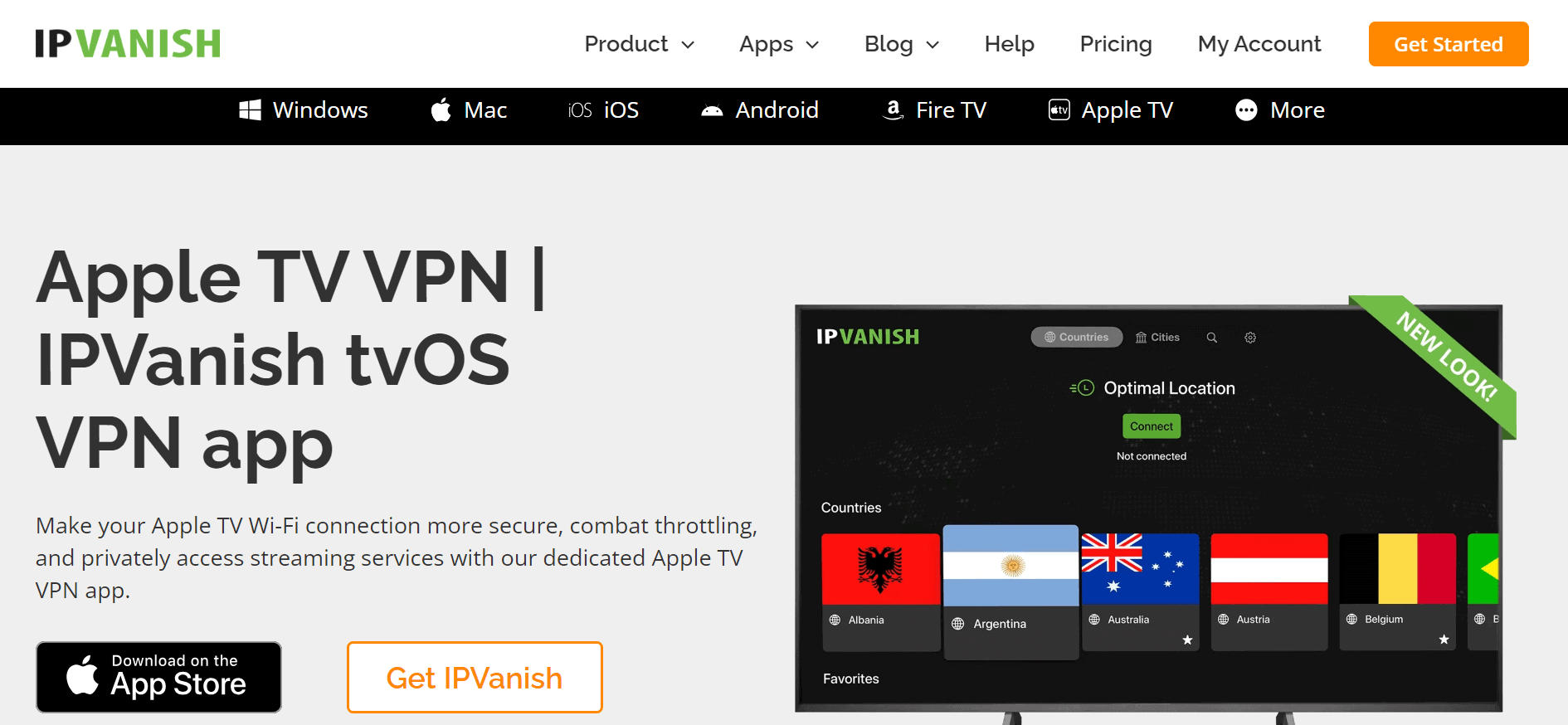 IPVanish released a dedicated Apple TV app in 2023 that works with tvOS. The app seems to be designed with beginners in mind. It takes only a few seconds to install, and the interface is clean and intuitive. The “optimal location” feature connects you to the fastest server, or you can use an intuitive search button to help you choose a server.