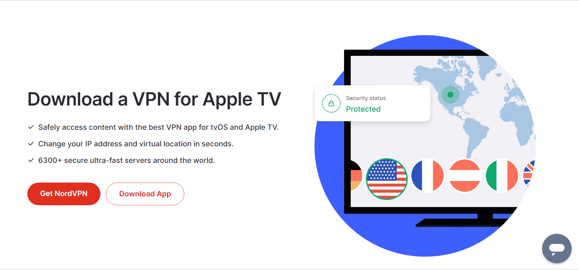 NordVPN has a well-designed app for Apple TV. It’s easy to download and install and a breeze to navigate. If you click the power button on the home screen, NordVPN will connect you to the fastest available server. Additionally, you can choose from servers in 111 countries.
