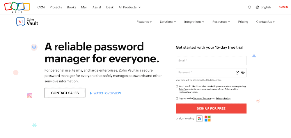 The Professional plan and up provide emergency vault access and 24/7 priority email, phone and remote assistance support. Zoho Vault is ideal for teams due to the multiple third-party integrations it allows with project management software and more.