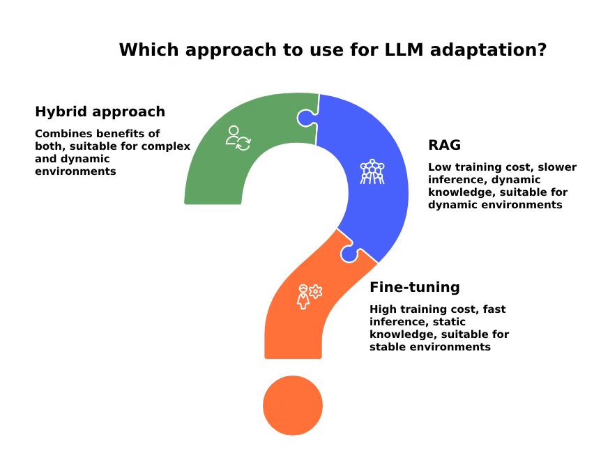 Rather than viewing these approaches as mutually exclusive, companies may recognize that the most effective solution often combines both techniques. For businesses dealing with a complex language like legal or medical and fast-changing facts, such as regulatory updates or financial data, a hybrid approach can deliver the best of both worlds.